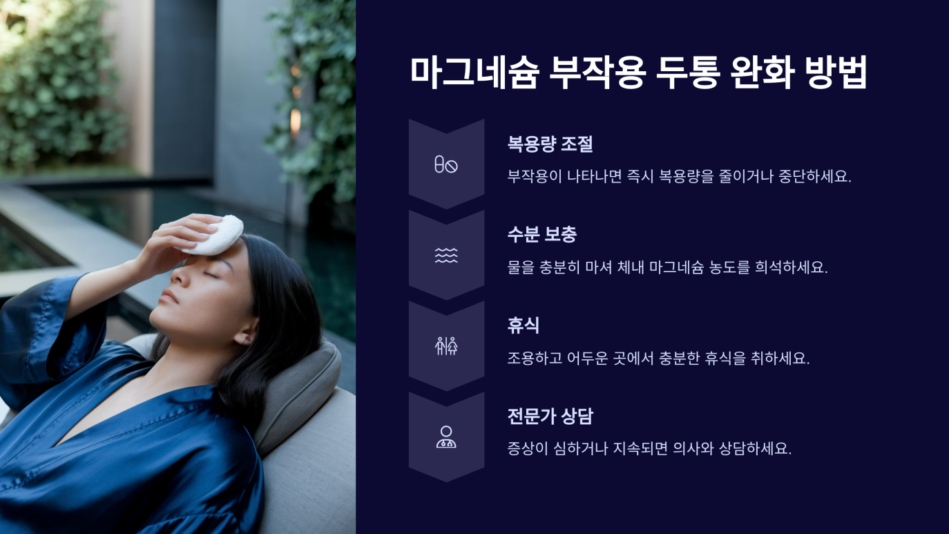 이처럼 복용 방법과 타이밍을 조절하면 **[마그네슘 부작용 두통]**을 줄이고 마그네슘의 이점을 극대화할 수 있습니다.