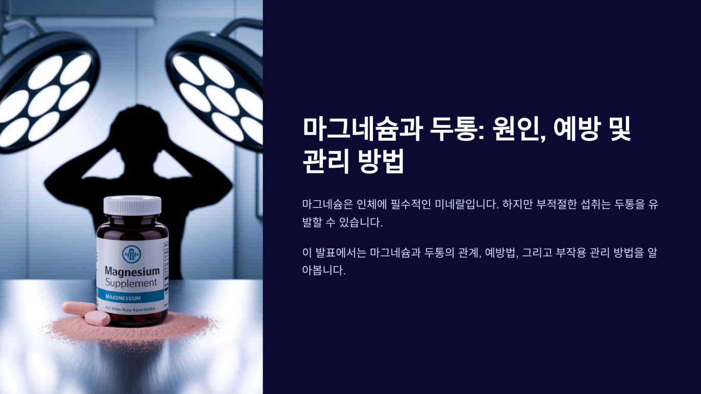 안녕하세요. 이 글에서는 마그네슘 부작용 두통에 대해 깊이 있는 정보를 제공해 드리고자 합니다. 현대인들은 바쁜 일상과 식생활의 불균형, 스트레스 증가 등 여러 요인으로 인해 영양소 결핍을 겪기 쉽습니다. 특히 마그네슘은 우리 몸에서 무척 중요한 영양소이지만, 부족하거나 과잉 섭취 시 부작용이 나타날 수 있습니다. 그중 한 가지로 거론되는 것이 바로 두통입니다. ‘마그네슘이 부족해서 두통이 생긴다’는 이야기는 자주 들리지만, 실제로는 마그네슘을 과도하게 섭취해도 두통이 유발될 수 있습니다.