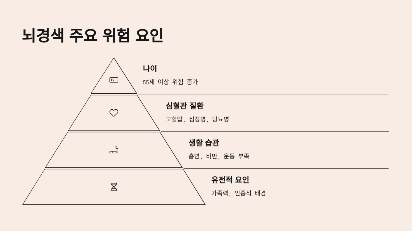 - 비만 및 대사증후군: 혈관 건강 전반을 악화시키고, 뇌경색 위험을 높입니다.