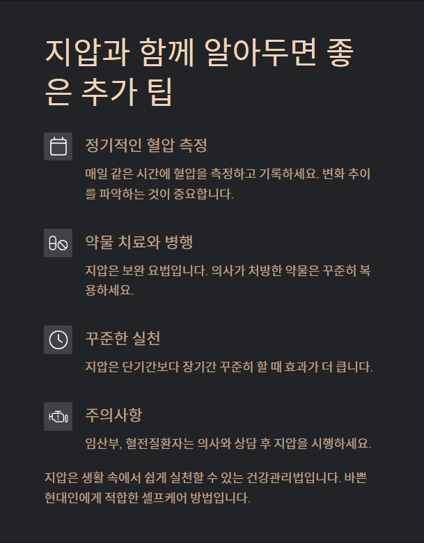 5. 혈압 낮추는법 지압과 함께 알아두면 좋은 추가 팁
